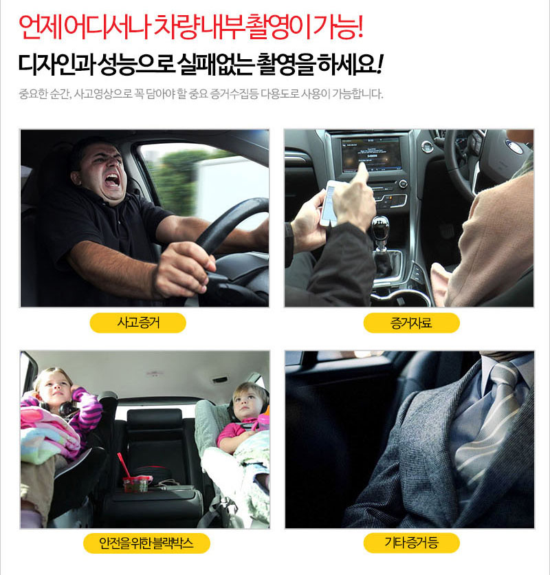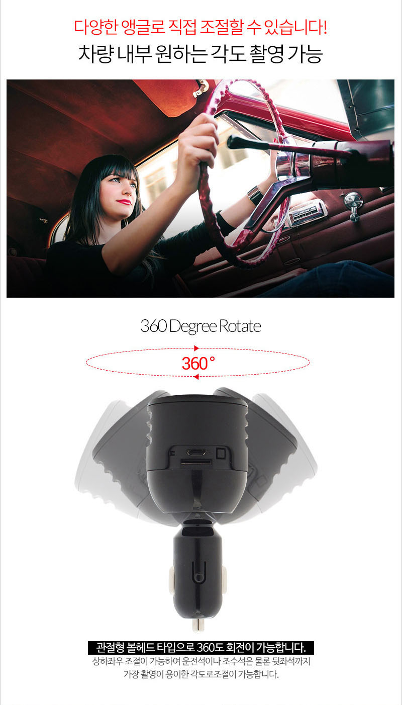 풀HD해상도의 영상과 함께 360도 볼헤드의 회전이 가능하기 때문에 뒷자석까지 사각지대없이
