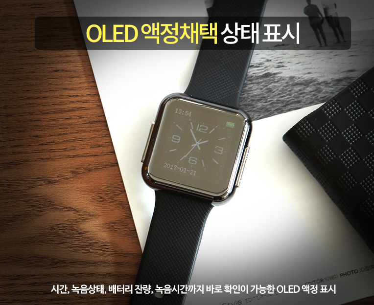 OLED액정을 채택하여 현재 시간 뿐 아니라 녹,음,상태, 배터리 잔량, 녹음시간까지 바로 확인이 가능하기 때문에