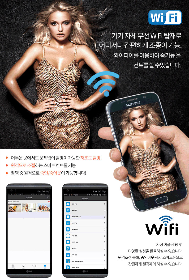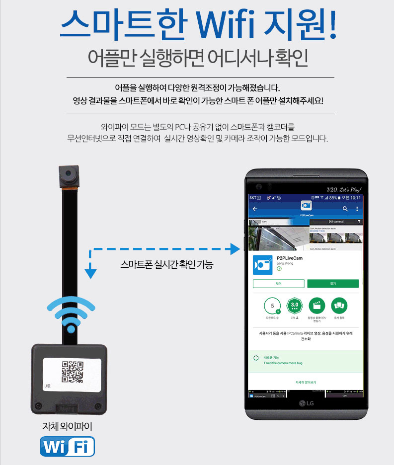 무료 어플을 실행하여 다양한 원격 조정이 가능한 특수촬용 용 제,품입니다.