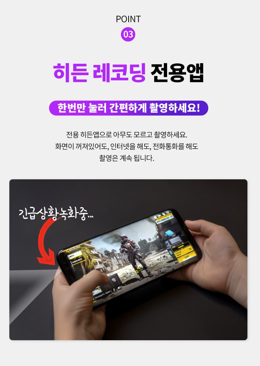 다만 전용 히든레코딩 앱을 통해 카메라만 별도로 구동을 시킬 수 있기때문에 증거 수집을 하는 분들에게는